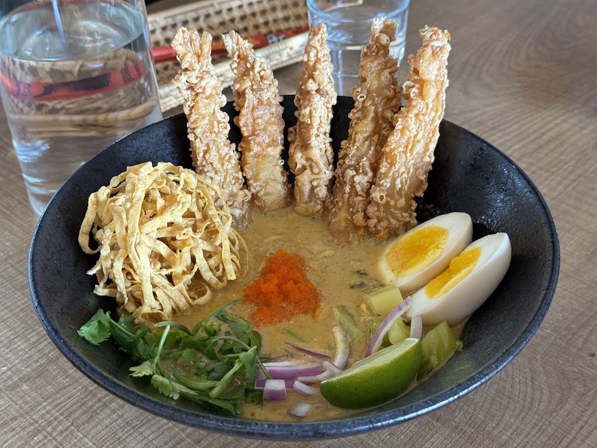 Another must-try is the Green Curry Ramen ($20.95), a delightful fusion of ramen noodles immersed in a flavorful green curry broth enriched with eggplant, fresh basil, and bamboo shoots. The balance of flavors makes this dish truly exceptional, revealing the restaurant's commitment to quality and taste.